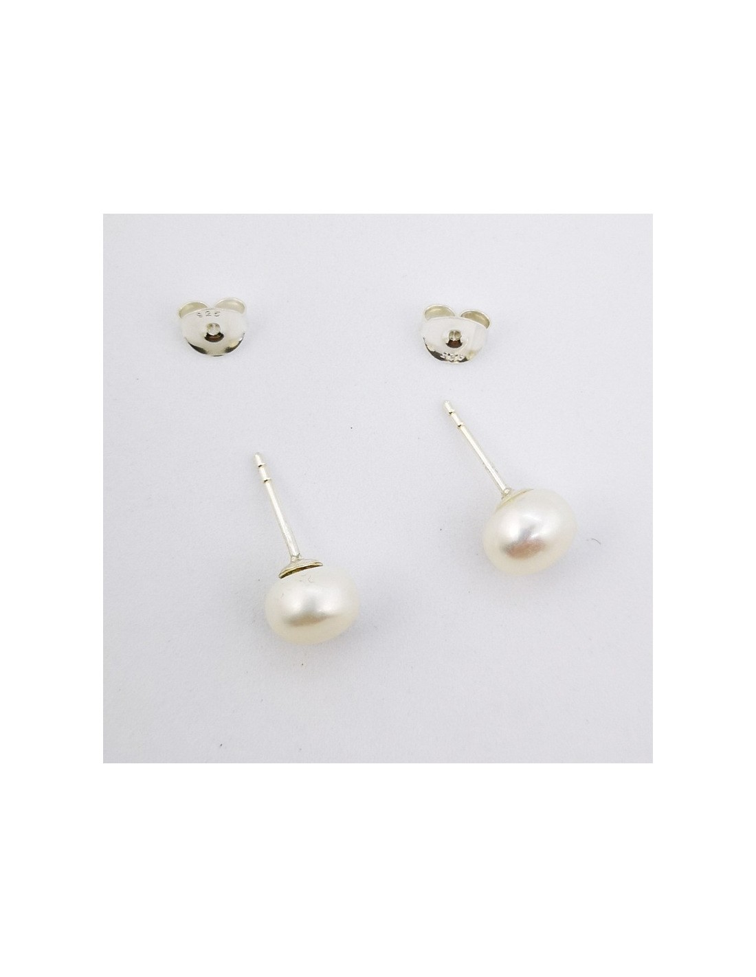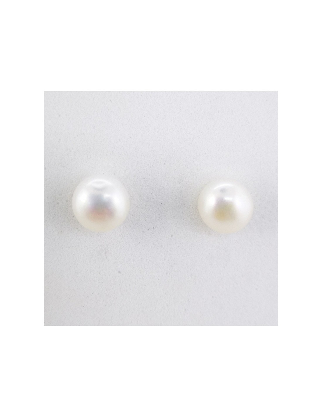 Botón liso de PERLA de 8 mm engarzado en plata de ley.