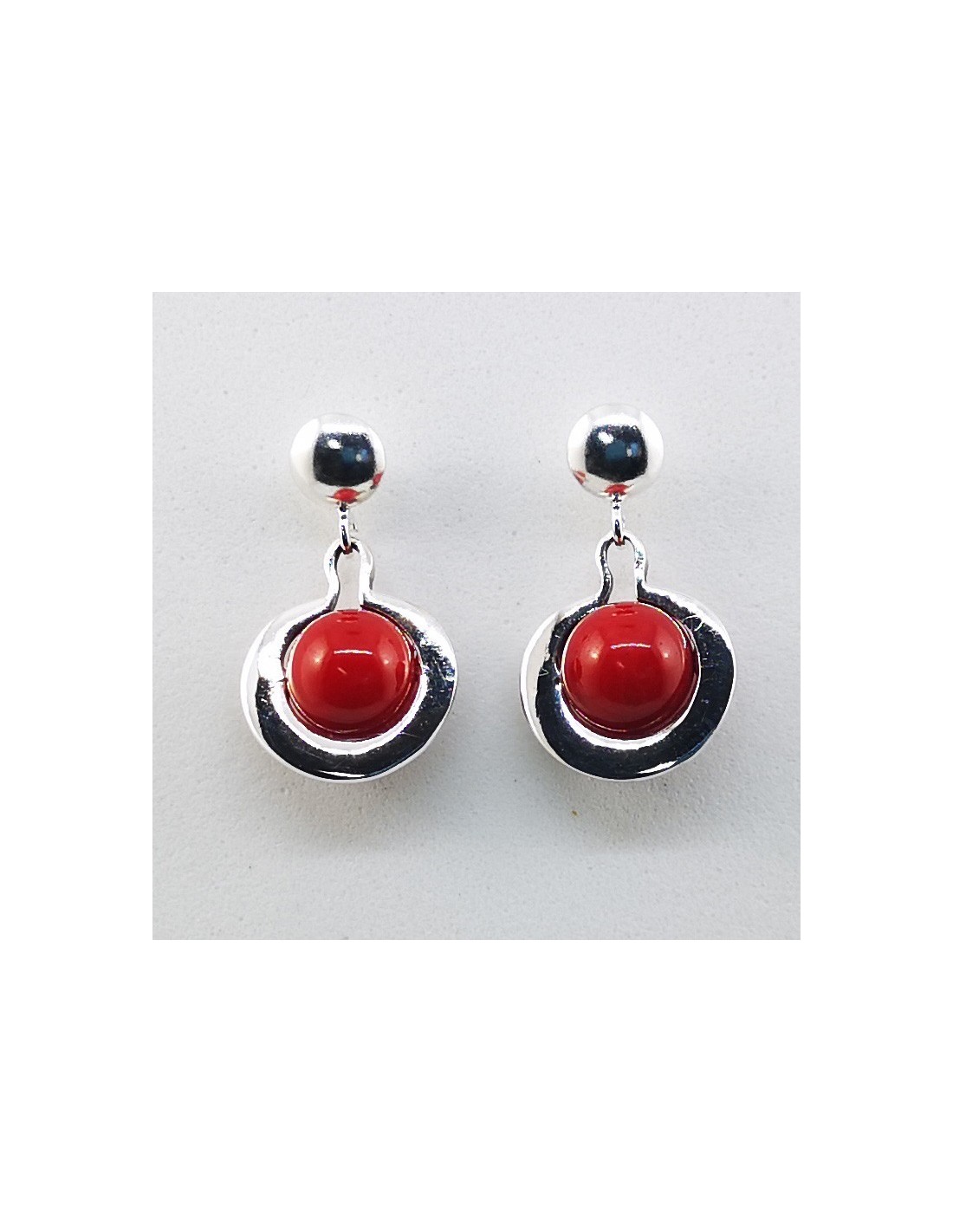 Bola lisa de Coral Bambú de 6 mm engarzado en plata de ley.